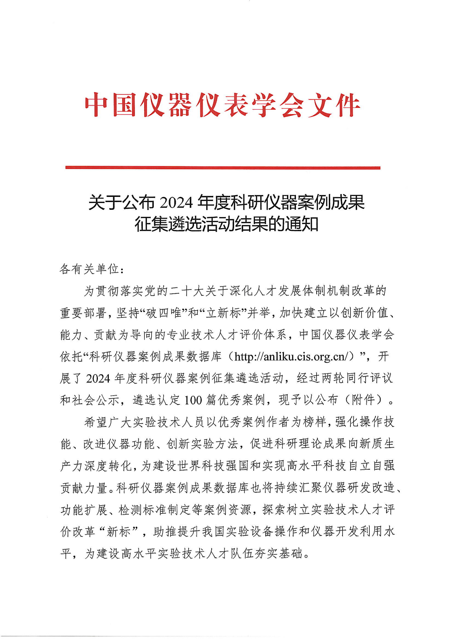 按照《关于开展2024年度科研仪器案例征集遴选活动的通知》相关安排,中国仪器仪表学会组织专家通过两轮同行评议及和社会公示,遴选认定100篇优秀案例,现予以公布,案例全文可在“科研仪器案例成果数据库(http://anliku.cis.org.cn/)”网站上浏览下载。